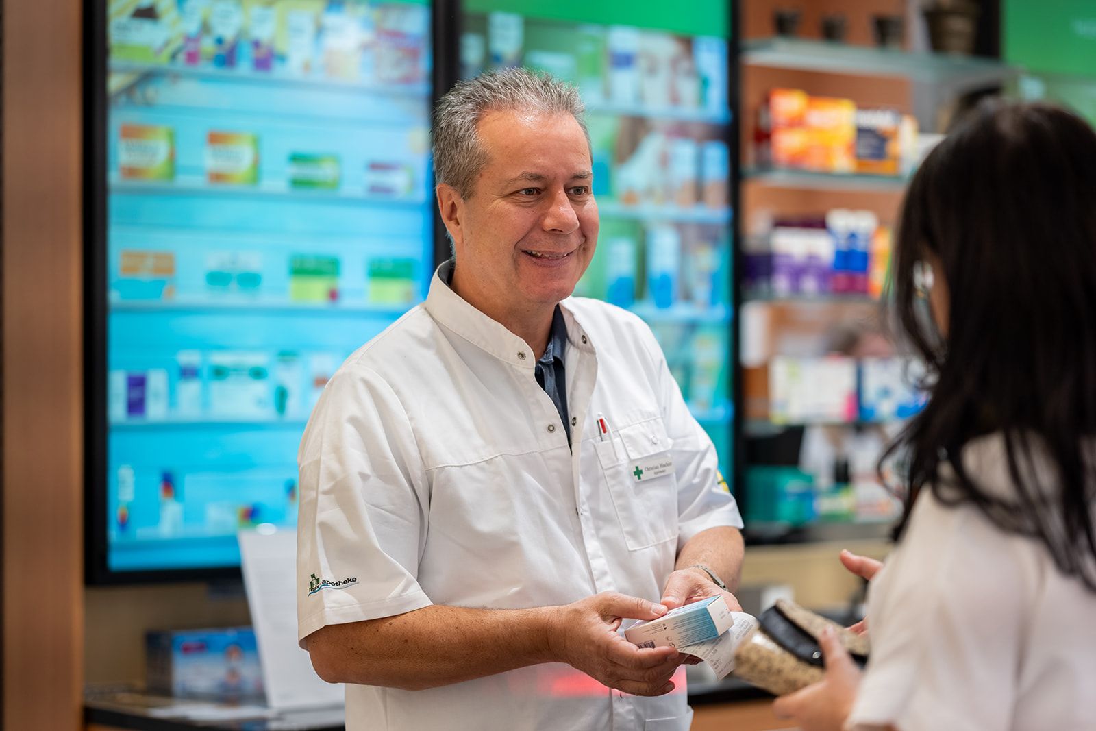 Wenden Sie sich vertrauensvoll an unser Team. Unsere Apothekerinnen und Apotheker haben neben einem erfolgreich abgeschlossenen Pharmazie-Studium ein breites Spektrum an Weiterbildungen absolviert.